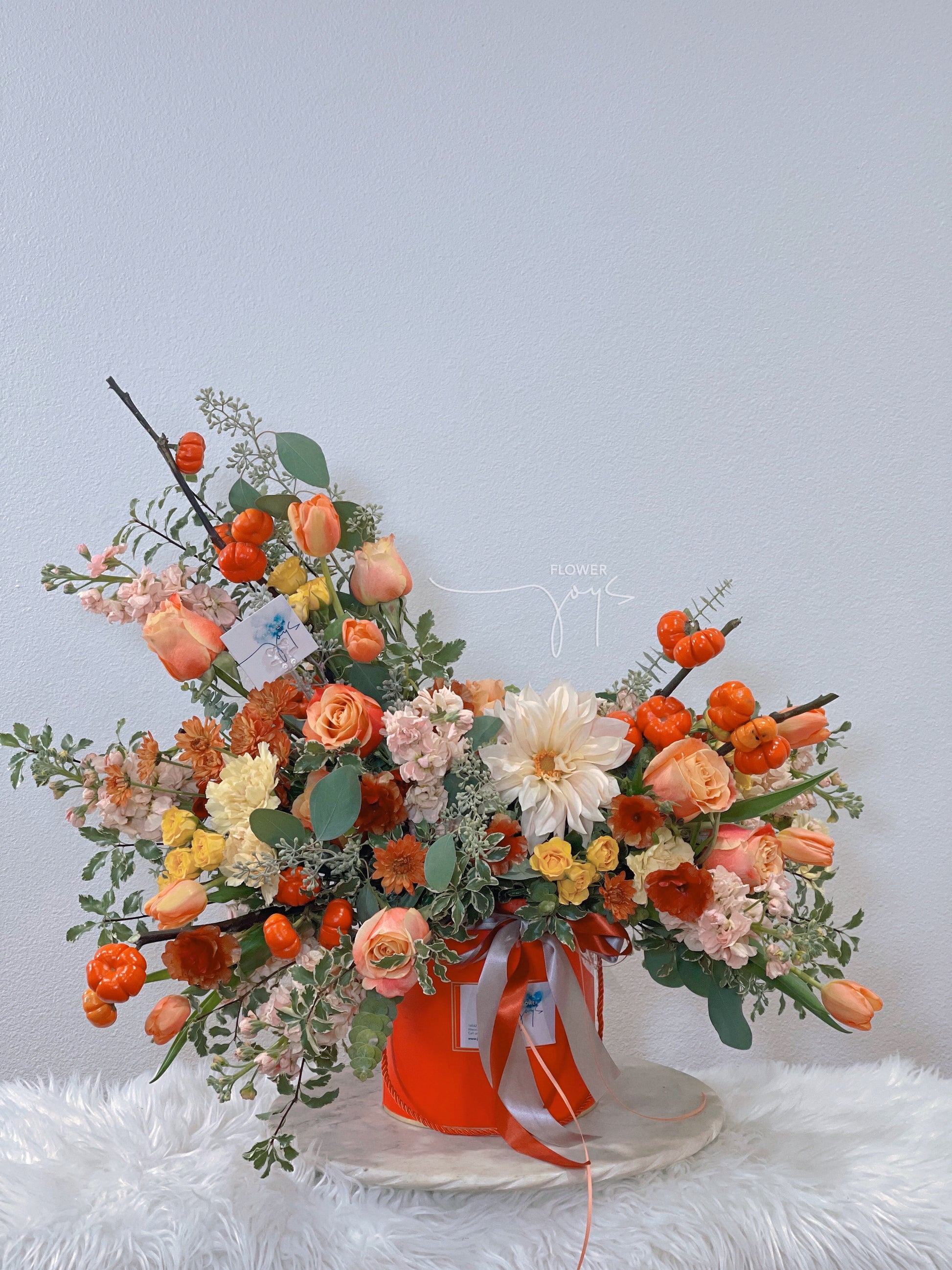 *This is an actual customer order. Please note that your arrangement will be similar and not identical, depending on availability, freshness, and seasonality. If certain florals or foliage are not available, we will replace with an item of equal or higher value.