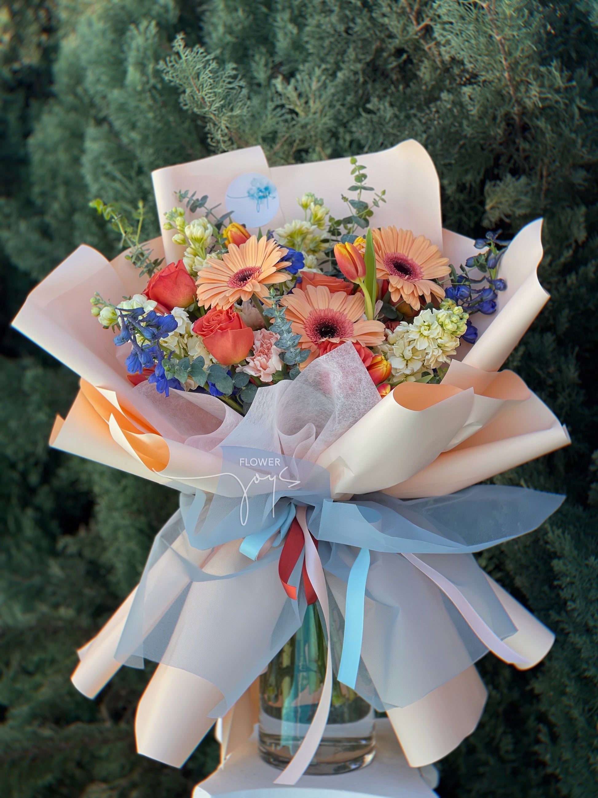 *This is an actual customer order. Please note that your arrangement will be similar and not identical, depending on availability, freshness, and seasonality. If certain florals or foliage are not available, we will replace with an item of equal or higher value.