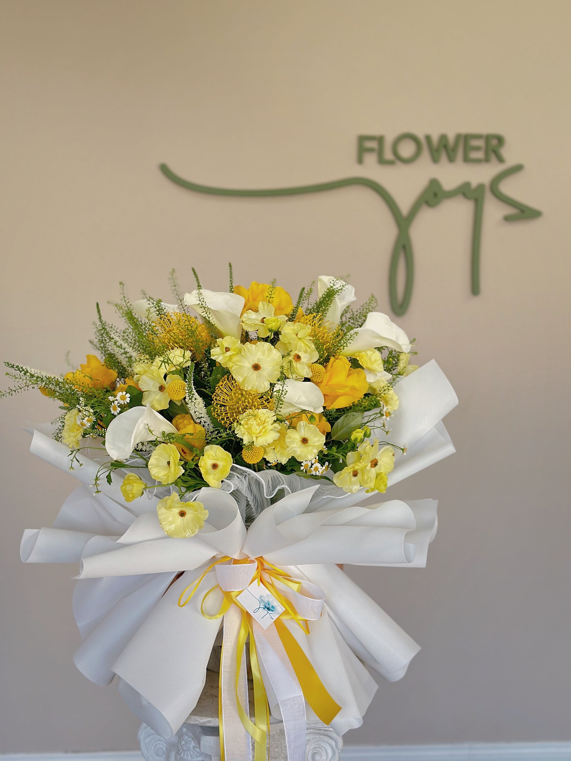 *This is an actual customer order. Please note that your arrangement will be similar and not identical, depending on availability, freshness, and seasonality. If certain florals or foliage are not available, we will replace with an item of equal or higher value.